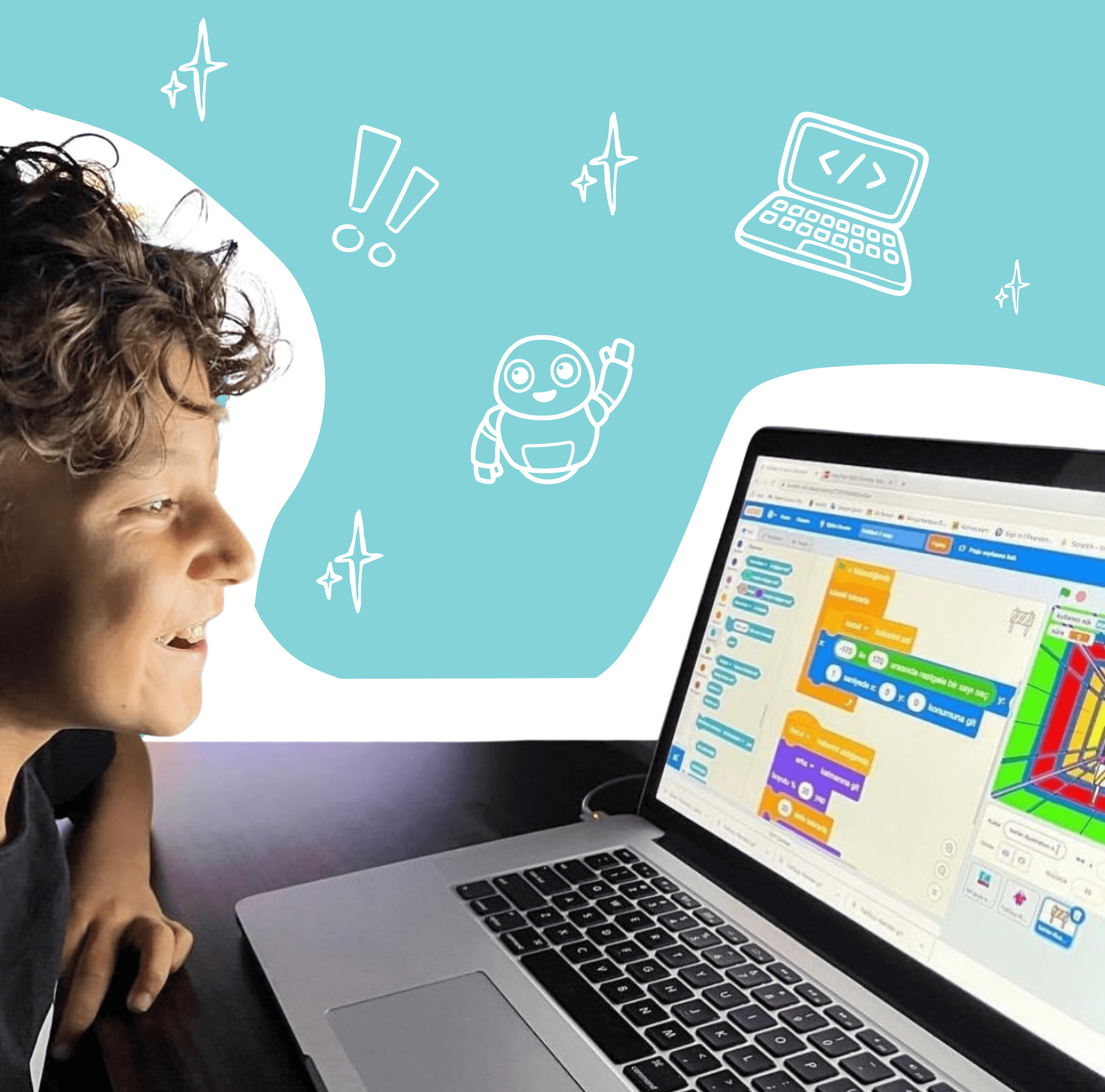 A fun, visual programming language where children build games, animations, and stories. They develop logic, sequencing, and creativity while coding their first projects.